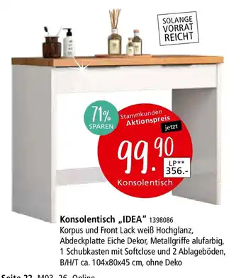 Jetzt im Angebot bei Zurbrüggen: XORA Konsolentisch,,IDEA" ✅ Aktion gültig vom 7-02 bis 21-02.